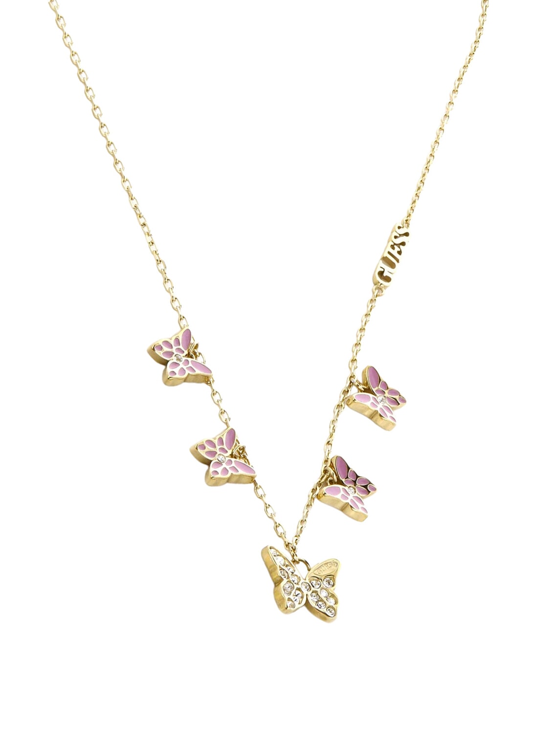 CHRYSALIS Halskette mit mehreren Anhängern aus Kristallen und Schmetterlingsmotiv