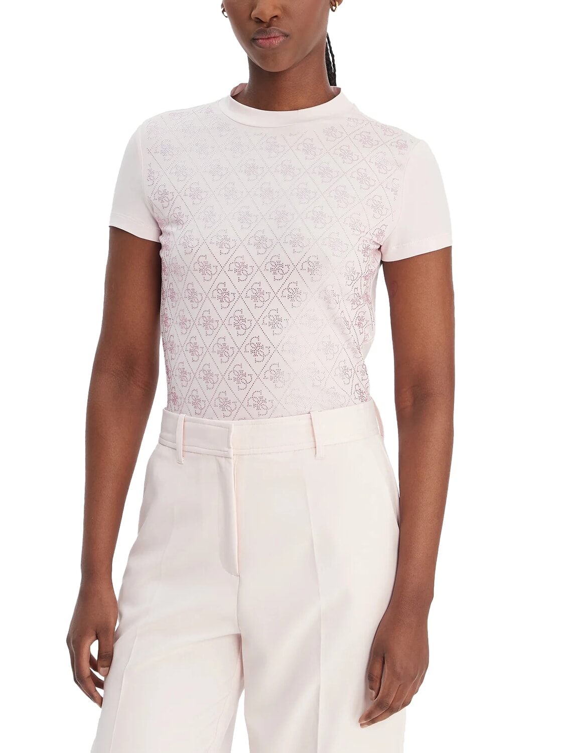MOCK NECK ALL OVER 4G Schmal geschnittenes T-Shirt mit Strasssteinen