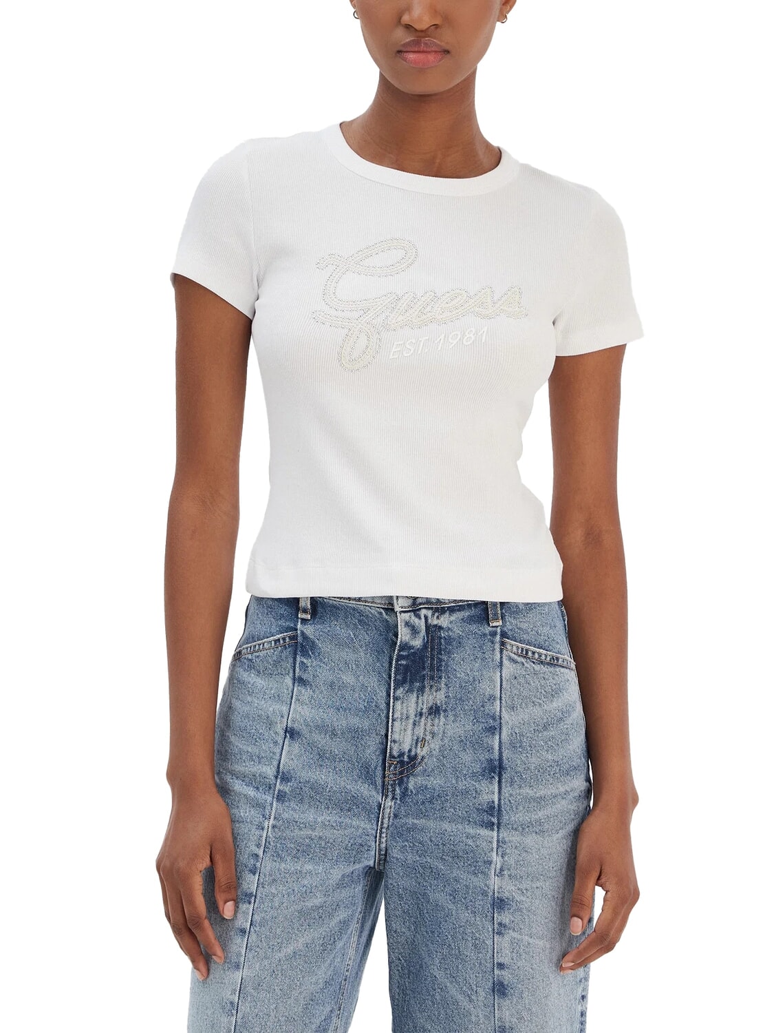 STUDS SCRIPT Schmal geschnittenes Kurzarm-T-Shirt