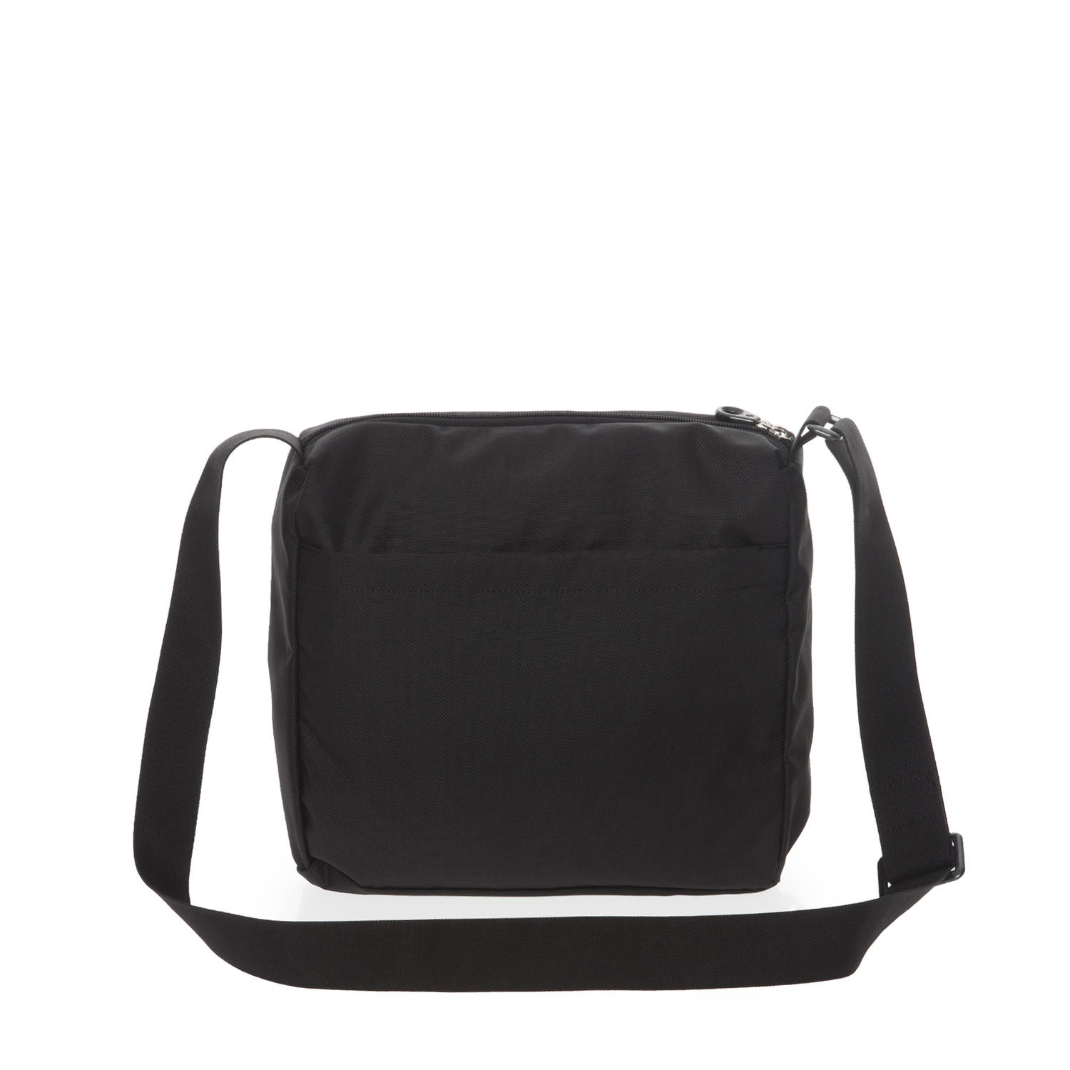 Capiente e leggera. La tasca posteriore ha lo strappo e non la cerniera. Il fermaglio di scorrimento della cinghia é di plastica e non di metallo.