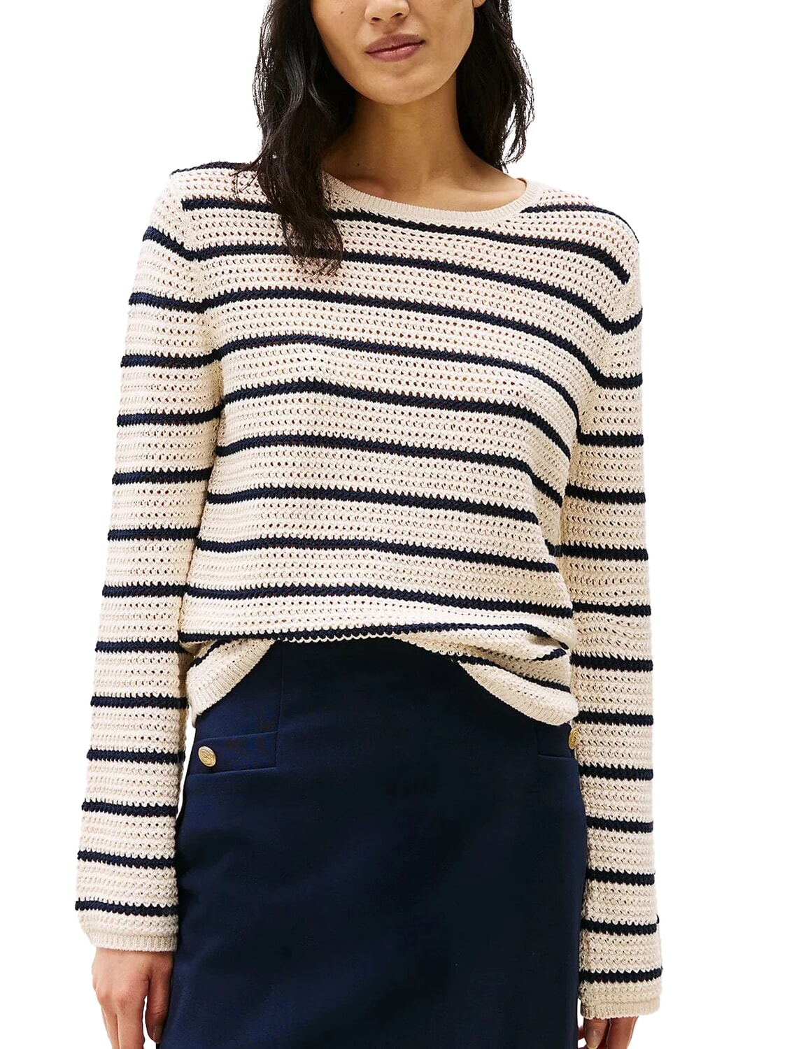 POINTELLE CROCHET Leichter Streifenpullover