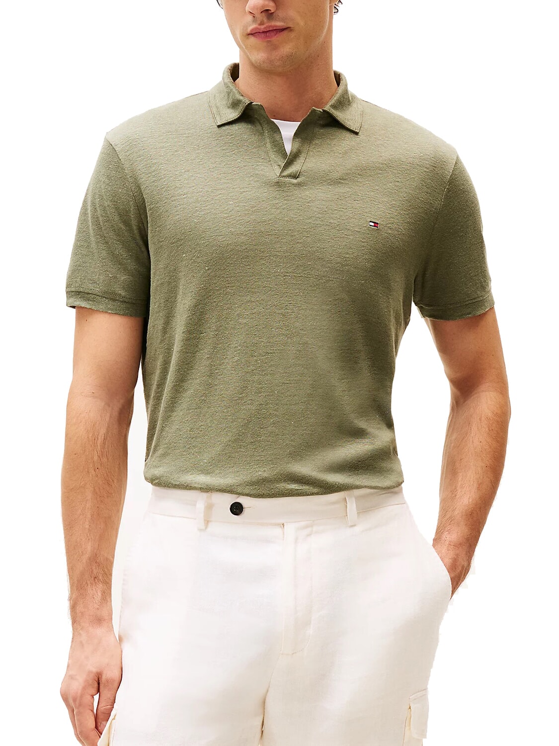 TH Kurzärmeliges Leinen-Polohemd
