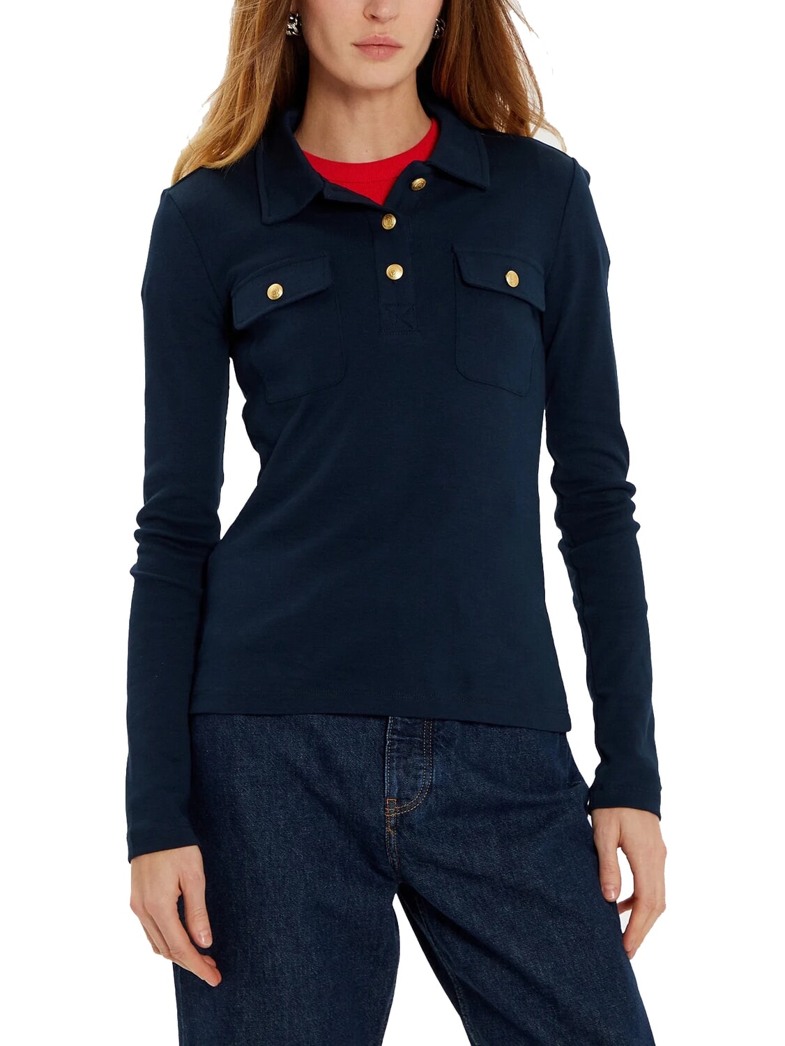 TH Schmal geschnittenes, langärmeliges Poloshirt